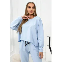 Prezentujemy Panstwu komplet 2-częściowy. Komplety składa sie z bluzy oraz spodnej.Bluza oversize, gładka bez nadruków.Spodná z kieszeniami i wiązaniem w pasie.Komplet wykonany je z wysokiej akości materiału. Rozmiar je uniwersalny i bedzie odpowiedni dla Pani w rozmiarze S lub M.