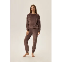 Hľadáte pohodlnú, voľne padnúcu súpravu oblečenia v zaujímavej farbe? Domáce oblečenie Fain je z bavlneného materiálu, v ktorom si môžete naozaj oddýchnuť. Skladá sa z mikiny s dlhými rukávmi a širokými nohavicami s elastickým pásom. Rukávy a nohavice sú navyše zakončené elastickými lemami.