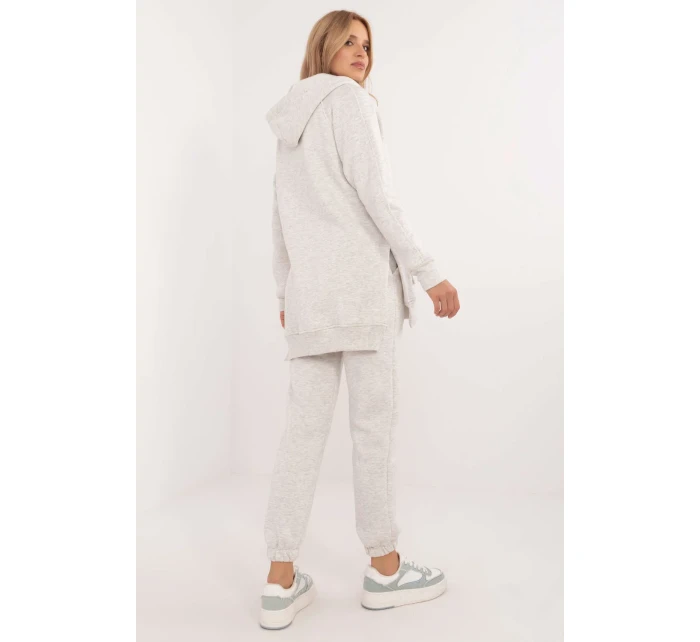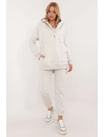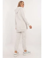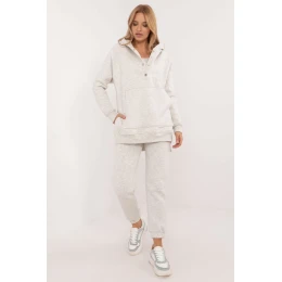 Zateplená dámská souprava v ležérním stylu, ideální pro chladnější dny a každodenní vycházky, se skládá z trička, mikiny a kalhot. Souprava se vyznačuje melanžovým vzorem, který jí dodává jedinečný nádech. Je vyrobena převážně z bavlny a poskytuje pohodlí a teplo, ideální pro podzimní a zimní dny. Kalhoty mají dlouhé nohavice s žebrovanými lemy a vysoký střih, který zvýrazňuje siluetu a zaručuje pohodlné nošení. V pase je stahovací šňůrka pro dokonalé přizpůsobení a zasouvací boční kapsy jsou praktickým řešením pro drobnosti. Mikina s dlouhým rukávem se zapíná do poloviny pomocí patentek, což jí dodává originalitu a usnadňuje oblékání. Má také kapuci a velkou klokaní kapsu, která dodává sportovní nádech a další funkčnost. Je doplněna klasickým tričkem, čímž vzniká pohodlný a stylový komplet, ideální pro každodenní styling v chladnějších dnech.