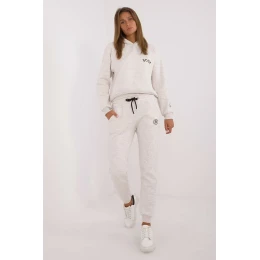 Dámska zateplená súprava pozostávajúca z mikiny a nohavíc, ktorá je ideálna na chladnejšie dni. Je vyrobená zo zmesi bavlny a polyesteru a poskytuje teplo a pohodlie. Dominantný melanžový vzor dodáva štýlový, ležérny nádych, zatiaľ čo malé aplikácie jemne spestrujú dizajn. Mikina má dlhé rukávy a praktickú kapucňu, ktorá je ideálna do nepriaznivého počasia, zatiaľ čo nohavice majú vysoký pás s nastaviteľným pásom so zaväzovaním pre dokonalé prispôsobenie. Šnúrky na nohaviciach dodávajú nohaviciam športový vzhľad a bočné vrecká zabezpečujú pohodlie. Súprava ideálna na každodenné výlety a relax v pohodlnom štýle.