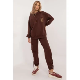 Štýlová hrejivá súprava pozostávajúca z mikiny a nohavíc, ktorá sa skvele hodí na každodenné príležitosti. Je vyrobená z kvalitnej bavlny s prídavkom elastanu a poskytuje pohodlie, pružnosť a priedušnosť, čo je ideálne na aktívne dni. Mikina s okrúhlym výstrihom má na prednej strane praktické vrecko zdobené módnou retiazkou, ktorá súprave dodáva originálny akcent. Nohavice s vysokým pásom a bočnými vreckami na gombíky sú pohodlné a funkčné a nohavice s manžetami na koncoch zaručujú dokonalé prispôsobenie. Vďaka hladkému vzoru je táto súprava univerzálna a ľahko kombinovateľná s inými kúskami oblečenia. Ideálna voľba pre ženy, ktoré pri každodennom obliekaní ocenia kombináciu pohodlia a elegantného vzhľadu.
