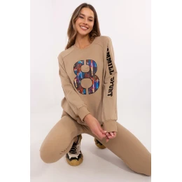 Dámský set skládající se z mikiny a legín je skvělý návrh na každodenní, ležérní stylizace. Ideální pro ženy, které ocení pohodlí a zároveň chtějí vypadat módně a stylově. Mikina s klasickým střihem, kulatým výstřihem a dlouhým rukávem je vyrobena z vysoce kvalitní směsi bavlny, polyesteru a elastanu. Je příjemná na dotek, elastická a odolná, což zajišťuje pohodlí během celého dne. Jemné nášivky a vyšívání na rukávu a přední části dodávají mikině jedinečný charakter, zdůrazňují moderní design. Legíny se stočenými nohavicemi a vysokým pasem jsou ideálním doplňkem k setu. Vyrobena z bavlny s příměsí elastanu, skvěle se přizpůsobují postavě, poskytují plnou volnost pohybu a pohodlí. Celý set v hladkém vzoru, což ho činí univerzálním a snadno kombinovatelným s různými doplňky. Jedná se o perfektní volbu pro každodenní vycházky, relaxaci nebo aktivity v uvolněném stylu. Složení mate