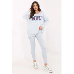 Táto dámska súprava pozostávajúca z mikiny a legín je dokonalou kombináciou pohodlia a štýlu. Mikina má na prednej strane potlač, ktorá jej dodáva jedinečný charakter a zvýrazňuje moderný dizajn. Je vyrobená zo zmesi kvalitnej bavlny, polyesteru a elastanu, ktorá poskytuje pohodlie a odolnosť. Legíny majú vysoký pás, ktorý dokonale zvýrazňuje pás a zaisťuje pohodlie počas každodenných aktivít. Zúžené nohavice perfektne sedia, zatiaľ čo rebrovaná tkanina dodáva jemnú štruktúru a módny vzhľad. Súprava je ideálna na každodenné výlety, prechádzky alebo odpočinok doma. Vďaka kombinácii univerzálneho štýlu a funkčnosti je skvelou voľbou na všetky ročné obdobia.