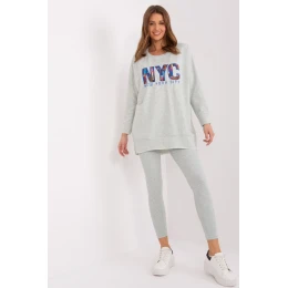 Táto dámska súprava pozostávajúca z mikiny a legín je dokonalou kombináciou pohodlia a štýlu. Mikina má na prednej strane potlač, ktorá jej dodáva jedinečný charakter a zvýrazňuje moderný dizajn. Je vyrobená zo zmesi kvalitnej bavlny, polyesteru a elastanu, ktorá poskytuje pohodlie a odolnosť. Legíny majú vysoký pás, ktorý dokonale zvýrazňuje pás a zaisťuje pohodlie počas každodenných aktivít. Zúžené nohavice perfektne sedia, zatiaľ čo rebrovaná tkanina dodáva jemnú štruktúru a módny vzhľad. Súprava je ideálna na každodenné výlety, prechádzky alebo odpočinok doma. Vďaka kombinácii univerzálneho štýlu a funkčnosti je skvelou voľbou na všetky ročné obdobia.