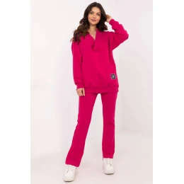Tento dámský set je ideální volbou na každý den, kombinující pohodlí s minimalistickým stylem. Skládá se z mikiny s dlouhým rukávem a zalomeným výstřihem do tvaru srdce, který dodává celku ženský akcent. Jemné nášivky na mikině jsou módním detail, který přitahuje pozornost. Kalhoty s jednoduchým střihem, vysokým pasem a širokou gumou v pase zajistí perfektní přiléhavost a pohodlí nošení. Vsuvné boční kapsy nejsou pouze praktické, ale také zdůrazňují volný charakter setu. Celý set je vyroben z měkké směsi bavlny, elastanu a polyesteru, což zaručuje pohodlí a trvanlivost. Set se skvěle hodí na procházky, nákupy nebo relaxaci doma, a jeho univerzální design umožňuje snadné přizpůsobení různým příležitostem.