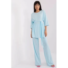 Elegantný a pohodlný dámsky komplet z pruhovanej tkaniny, ktorý je ideálny na každý deň. Je vyrobený z kvalitnej bavlny s prídavkom elastanu, čo zaručuje pohodlie a skvelé prispôsobenie sa postave. Hladká štruktúra a jemná elasticita mu dodávajú moderný, minimalistický charakter. Blúzka s 3/4 rukávmi má klasický, univerzálny strih, ktorý sa skvele hodí k nohaviciam so širokým pásom. Ďalšou výhodou je opasok na zapínanie, ktorý pomáha zvýrazniť pás a dodať elegantný akcent štýlu. Bočné vrecká zvyšujú funkčnosť a pohodlie. Skvelá voľba pre ženy, ktoré oceňujú ležérny štýl, voľnosť a módne detaily!