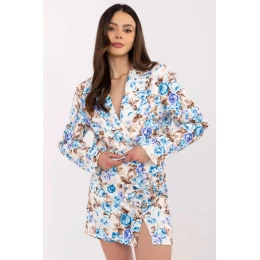 Výjimečný dámský komplet spojující eleganci s dívčím šarmem, krátká sako a sukňové šortky v módním květinovém vzoru jsou ideální volbou na každý den, do práce, na návštěvní setkání nebo na akce. Sako s kratším střihem, klopovými límci a dvouřadým zapínáním krásně zdůrazňuje pas, zatímco podšívka zajišťuje pohodlné nošení. Ozdobná, odnímatelná brož dodává celkovému vzhledu eleganci a umožňuje jemné přizpůsobení stylizace příležitosti. Sukňové šortky s vysokým pasem kombinují vzhled klasické sukně s komfortem šortek. Vzadu všitá guma v pase zajišťuje dokonalé přizpůsobení a pohodlí po celý den, i během intenzivnějších aktivit. Absence kapes udržuje hladkou linii siluety. Komplet vyrobený z vysoce kvalitní směsi polyesteru a elastanu vypadá lehce a žensky, a zároveň je pohodlný a praktický.