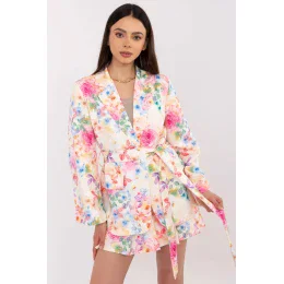 Dámský a elegantní komplet složený z saka a šortkových sukní je ideální volbou pro každou příležitost, od každodenního vycházení přes práci až po elegantní večírek. Květinový vzor dodává soupravě jemnou svěžest a elegantní střih zdůrazňuje siluetu. Sako s dlouhým rukávem, klopami a zapínáním na knoflík bylo obohaceno o všité vycpávky na ramenou, které krásně modelují linii ramen. Přiložený pásek na uvázání umožňuje přizpůsobit ho postavě a přidat tak stylizaci individuální charakter. Šortková sukni s vysokým pasem kombinuje ženský vzhled sukně s pohodlím šortek. Plisovaný přední díl a elegantní pásek zapínající se v pase vytvářejí efektní akcent a zeštíhlují siluetu. Absence kapes dodává celku lehkost a elegantní zakončení. Komplet vyrobený z kombinace polyesteru a elastanu zajišťuje pohodlí při nošení a vynikající vzhled po celý den.