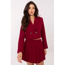 Dámska elegantná súprava pozostávajúca z krátkeho saka a sukne-šortiek, ideálna na každodenné nosenie, do práce a na stretnutia. Sako má golier, zapínanie na gombíky, s vloženými ramennými vypchávkami. Sukňa-šortky má nariasenú prednú časť a vložené šortky, ktoré zabezpečujú pohodlie a úplnú voľnosť pohybu, a elastický zadný diel na lepšie prispôsobenie. Súprava je vyrobená zo zmesi polyesteru a elastanu, s hladkým vzorom, a spája eleganciu s pohodlím pri nosení. Dlhé rukávy saka a mini dĺžka sukne-šortiek dodávajú oblečeniu moderný a ženský charakter. Ide o súpravu, ktorá spája eleganciu, funkčnosť a pohodlie, ideálnu na mnohé každodenné a výnimočné stylingy.