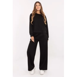 Táto dámska teplá súprava z veľmi mäkkého materiálu maslového typu je ideálnou kombináciou pohodlia a štýlu na každodenné nosenie. Tkanina z viskózy, polyesteru a elastanu je mimoriadne mäkká, pružná a príjemná na dotyk, vďaka čomu je táto súprava ideálna na doma aj do mesta. Súprava sa skladá z voľného, ležérneho topu a nohavíc s vysokým pásom a elastickou šnúrkou v páse, ktoré dokonale sedia. Široké nohavice dodávajú celej súprave ľahký a moderný vzhľad, zatiaľ čo bočné vrecká zdôrazňujú praktický charakter oblečenia.