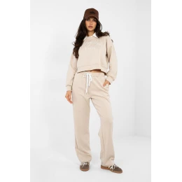 Kompletná tepláková súprava pozostávajúca z mikiny a nohavíc je pohodlnou voľbou na každodenné oblečenie v ležérnom štýle. Mikina je kratšia ako štandardná s dlhými rukávmi a golierom, čo dodáva celému oblečeniu moderný charakter, a vyšívaný nápis na prednej strane je módnym ozdobným akcentom. Nohavice s dlhými rovnými nohavicami a vysokým pásom zaručujú pohodlie a voľnosť pohybu. V páse je šnúrka na individuálne prispôsobenie a bočné vrecká zvyšujú funkčnosť modelu. Súprava je vyrobená z kombinácie polyesteru, elastanu a viskózy, vďaka čomu je mäkká, pružná a pohodlná na nosenie. Ideálna voľba na bežné nosenie, na doma pri relaxácii aj na príležitostné výlety.