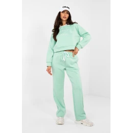 Kompletná tepláková súprava pozostávajúca z mikiny a nohavíc je pohodlnou voľbou na každodenné oblečenie v ležérnom štýle. Mikina s kratšími rukávmi a golierom, ako je štandardné, ponúka moderný charakter celku a vyšívaný nápis na prednej strane dodáva módny dekoratívny prvok. Nohavice s dlhými rovnými nohavicami a vysokým pásom zabezpečujú pohodlie a voľnosť pohybu. Majú šnúrku v páse na individuálne prispôsobenie a bočné vrecká zvyšujú funkčnosť modelu. Súprava je vyrobená z kombinácie polyesteru, elastanu a viskózy, vďaka čomu je mäkká, elastická a pohodlná na nosenie. Je ideálnou voľbou na každý deň, či už na relax doma alebo na bežné výlety. elastan 5%
