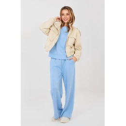 Táto dámska teplá súprava z výnimočne mäkkého maslového materiálu je ideálnou kombináciou pohodlia a štýlu na každodenné nosenie. Tkanina zo zmesi viskózy, polyesteru a elastanu je veľmi mäkká, pružná a príjemná na dotyk, takže súprava je ideálna na doma aj do mesta. Súprava sa skladá z voľného, ležérneho topu a nohavíc s vysokým pásom s elastickým pásom, ktorý dokonale padne. Široké nohavice dodávajú celkovému vzhľadu ľahkosť a moderný vzhľad a bočné vrecká zdôrazňujú praktický charakter súpravy.