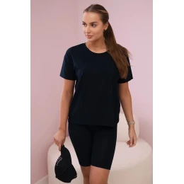 Predstavujeme súpravu blúzky a nohavíc. Hladká blúzka bez potlače legín má krátke nohavice. Súprava je vyrobená z kvalitného materiálu. Veľkosť je univerzálna a vyhovuje dámam, ktoré nosia veľkosť S, M alebo L.