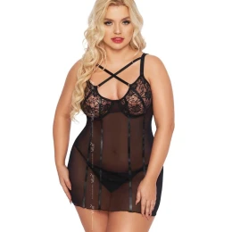 Zvodná košieľka, ktorá spája zmyselnú eleganciu s nádychom tajomna. Korzetové zakončenie košíčkov zvýrazňuje ženskosť a lesklé zvislé prúžky priťahujú pozornosť. Je vyrobená z kvalitného materiálu (90 % polyamid, 10 % elastan), ktorý zaručuje pohodlné nosenie a ideálny komfort pri nosení. Táto košieľka je skvelou voľbou na špeciálne príležitosti, ktoré si vyžadujú trochu kúzla a zvodného šarmu. Súčasťou sú tangá.
