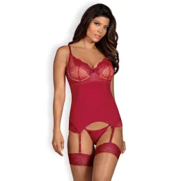 Zmyselný korzet Rosalyne vo farbe červeného vína, doplnený tangami. Prekvapenie večera? - Ty a táto kráska!