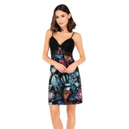Výnimočná nočná košeľa ušitá z mäkkej viskózy, z krásneho vzorovaného úpletu s malebnými pivonkami. Naživo pôsobia ešte lepšie – kvety sú ako ručne maľované, upútajú pozornosť. Celok je mäkký, pružný, ideálny na relaxáciu a stáva sa prísľubom úspešnej relaxácie. Čipkový horný diel, čierny, profilovaný, mäkké košíčky podšité jemným materiálom zospodu. Nastaviteľné popruhy.