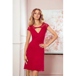 Nočná košeľa z viskózy a čipky s originálnym strihom. Špicatý výstrih, krajkový vršok imitujúci bolerko, krajkový chrbát. Navrhnuté a ušité v Poľsku.