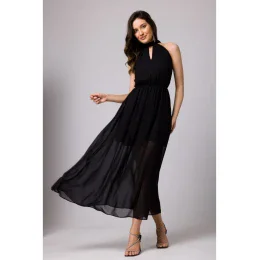 model 18429138 Šifonové šaty se zavazováním za krkem černé - Makover