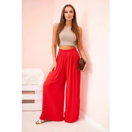 Široké dámské kalhoty s elastickým pasem červený