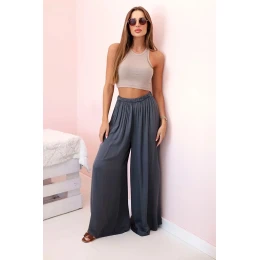 Široké dámské kalhoty s elastickým pasem grafit
