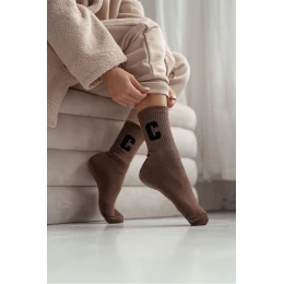 Skarpetki Damskie Frotte Z Literą C Brązowe
