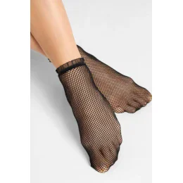 Drobné síťované kabaretní ponožky. Kolem kotníku jsou doplněny ozdobným krajkovým lemem z organzy. Extrémně pružné a příjemné na nošení.