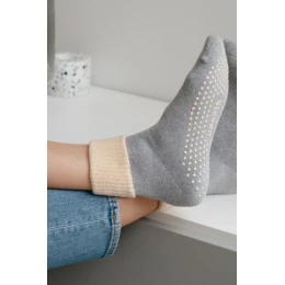 Protišmykové dámske froté ponožky s vyhrnutým lemom.