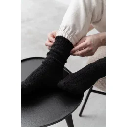Lem a prednú časť modelu zdobia zvislý vzor. Ponožky sú neoceniteľné na dlhých zimných horských výletoch av zimných mrazoch.