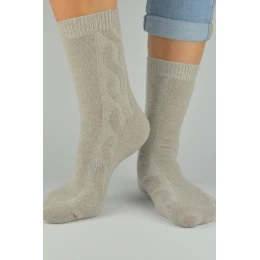 Dámské ponožky nežehlené s vlnou. Složení materiálu: 42 % vlna, 20 % polyamid, 19 % viskóza, 18 % polyester, 1 % elastan.