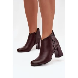 Skórzane Botki Ocieplane Na Słupku Bordowe Ivessara