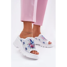 Skórzane Klapki Damskie Na Koturnie Artiker 56C0428 Białe