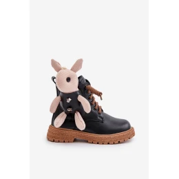 Skórzane Ocieplane Botki Dziecięce Na Zamek Z Misiem Vinceza 36261 Czarne