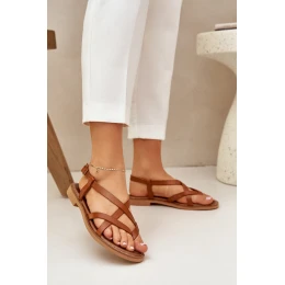 Skórzane Płaskie Sandały Z Przeplatającymi Się Paseczkami Zazoo 40429 Brązowe
