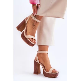 Skórzane Sandały Na Masywnej Platformie Beżowe Marina