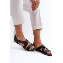 Skórzane Sandały Ze Ściągaczem Czarne Apulia