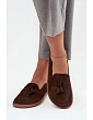 Mokasyny damskie typu barefoot to propozycja dla osób ceniących naturalny komfort i swobodę ruchu. Wykonane z miękkiego, naturalnego zamszu, doskonale dopasowują się do kształtu stopy, zapewniając przyjemne uczucie lekkości i wygody podczas noszenia. Z przodu cholewkę zdobi pasek z dwoma frędzelkami, które dodają całości subtelnego uroku i stylowego charakteru. To idealne buty na co dzień – sprawdzą się zarówno w luźnych, casualowych stylizacjach, jak i w bardziej eleganckich zestawach. Przy wyborze rozmiaru prosimy sugerować się tabelą rozmiarów.