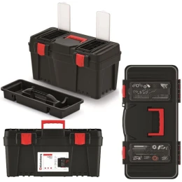 Veko má organizéry s priehradkami, vďaka ktorým môžete triediť skrutky, skrutky, bity atď.