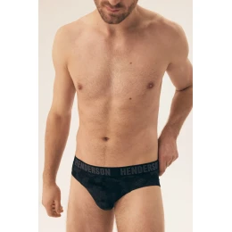 Pánske slipy z vysokokvalitnej bavlny so širokým elastickým pásom s logom spoločnosti, balené po piatich kusoch v čiernej a grafitovej farbe.