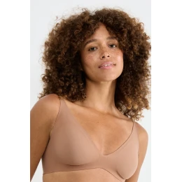 Táto bezšvová podprsenka v nude farbe je kombináciou moderného dizajnu a maximálneho pohodlia. Mäkký, elastický materiál sa jemne prispôsobí telu a poskytuje prirodzenú podporu bez kostice alebo tuhých výstuží. Vďaka hladkej konštrukcii je podprsenka neviditeľná pod oblečením, dokonca aj pod vypasovanými štýlmi.