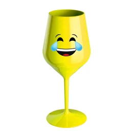 SMAJLÍK PLAČÍCÍ SMÍCHY - žlutá nerozbitná sklenice na víno 470 ml