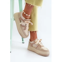 Sneakersy Damskie Na Platformie Z Eko Skóry Beżowe Moun