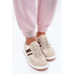 Sneakersy Damskie Z Eko Zamszu Panterka Beżowe Marinils