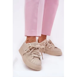 Sneakersy Damskie Ze Zdobieniem Na Platformie Beżowe Eanneth