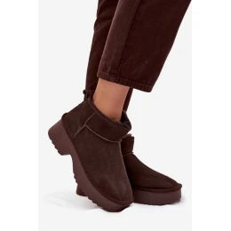 Tieto dámske snehové čižmy vyrobené z prírodného semišu sú štýlovou ponukou na zimné dni. Sú posadené na platforme, poskytujú stabilitu a pohodlie pri chôdzi a zároveň účinne izolujú proti chladu. Vnútorná strana čižiem je vybavená kožušinou, ktorá zaručuje teplo a pohodlie počas mrazivých dní. Moderný strih zaručuje, že snehové čižmy dokonale zapadnú do súčasných trendov. Ideálna voľba pre ženy, ktoré oceňujú štýl a pohodlie v zimnom oblečení.