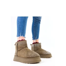 Stylové dámské sněhule se zateplením, ideální na zimní dny. Vyrobena z odolné látky, poskytují teplo a pohodlí při nošení. Ozdobené zirkony vypadají mimořádně módně, kulatý špičák a měkká textilní vložka zaručují pohodlí. Model nad kotníkem, na platformě o výšce 4,5 cm, kombinuje funkčnost s ženským, efektním vzhledem.