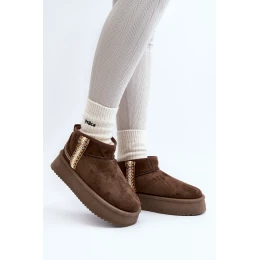 Śniegowce na platformie to najmodniejszy fason tego sezonu! Model ten wykonany został z eko zamszu. Gruba podeszwa z gumowego tworzywa świetnie odizoluje od zimnego podłoża. Cholewka do kostki ozdobiona azteckim wzorem. Środek ocieplony futerkiem. Koniecznie musisz je mieć! Przy wyborze rozmiaru prosimy sugerować się tabelą rozmiarów.