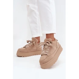 Šněrovací dámské sněhule na platformě zateplené kožíškem béžové model 21710258 - Boto