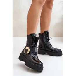 Výnimočné topánky z prírodnej kože. Stoja na platforme a plochom podpätku, čo zaručuje stabilitu a pohodlné nosenie. Model so zipsom je vybavený aj šnúrkami pre lepšie nosenie. Veľká pracka s pásikom na zvršku je výrazným detailom, ktorý im dodáva módny, osobitý charakter.