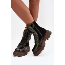 Čižmy Maciejka sú ponukou pre ženy, ktoré oceňujú originálny štýl a pohodlie. Sú vyrobené z kvalitnej prírodnej kože, vyzerajú elegantne a sú mimoriadne odolné. Model je umiestnený na pevnej platforme, ktorá zabezpečuje stabilitu a pohodlie pri nosení. Čižmy majú zips a klasické šnurovanie, ktoré umožňuje ideálne prispôsobenie sa nohe a pohodlné obutie. Hranatá špička dodáva celku moderný charakter, čím zdôrazňuje neotrelý strih čižiem. Vnútro je vystlané mäkkým, na dotyk príjemným materiálom, ktorý zaručuje tepelný komfort počas chladnejších dní. Sú to štýlové a originálne čižmy, ktoré sa dokonale hodia do každodennej štylizácie a dodávajú im výraz a charakter.